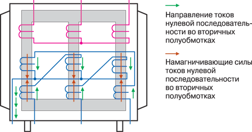 Из формулы (1) следует, что это обеспечивает большую величину тока ОКЗ у трансформаторов со схемами Y/Zн по сравнению с трансформаторами со схемами D/Yн.